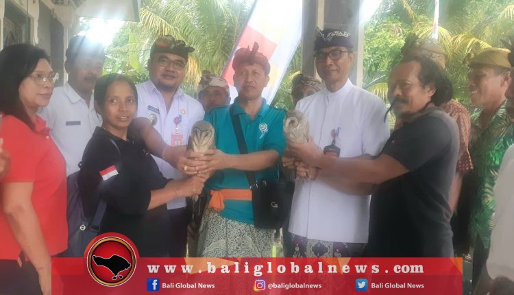 Di Subak Cangi, Desa Kuwum, Kecamatan Mengwi, pihaknya menyerahkan sepasang burung hantu kepada Pekaseh setempat.
