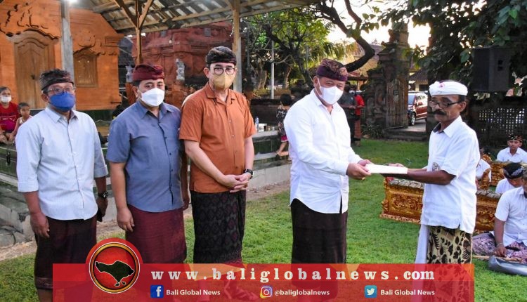 Sekda Alit Wiradana yang mewakili Walikota Denpasar, I Gusti Ngurah Jaya Negara, menyerahkan bantuan uang pembinaan. Tampak hadir Ketua Komisi III DPRD Provinsi Bali, AA Ngurah Adhi Ardhana, Ketua Komisi I DPRD Kota Denpasar, Ketut Suteja Kumara, Kadisbud, Raka Purwantara serta undangan lainya.