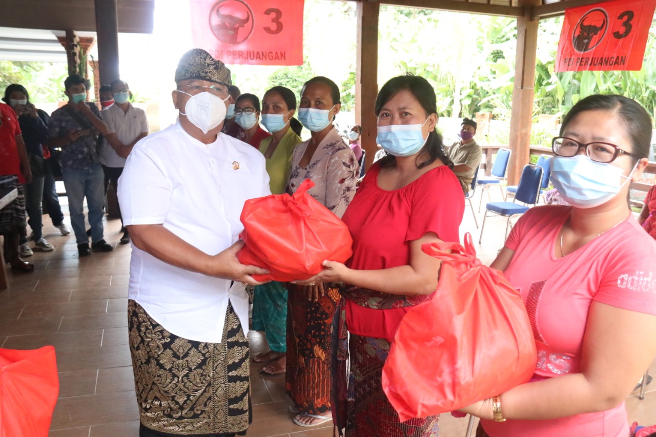 Parwata yang juga Sekretaris Dewan Pimpinan Cabang (DPC) PDI Perjuangan Kabupaten Badung membagikan sembako kepada 20 orang Kader Posyandu Balita, Kader Posyandu Lansia, Kader Bina Keluarga Balita (BKB) dan Kader Bank Sampah.