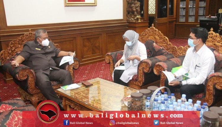 Ketua DPRD Badung, Putu Parwata, menerima audiensi Kepala Kantor BPJS Ketenagakerjaan Badung, Nurul Indahyati, di ruangan kerjanya, pada Senin (15/2).