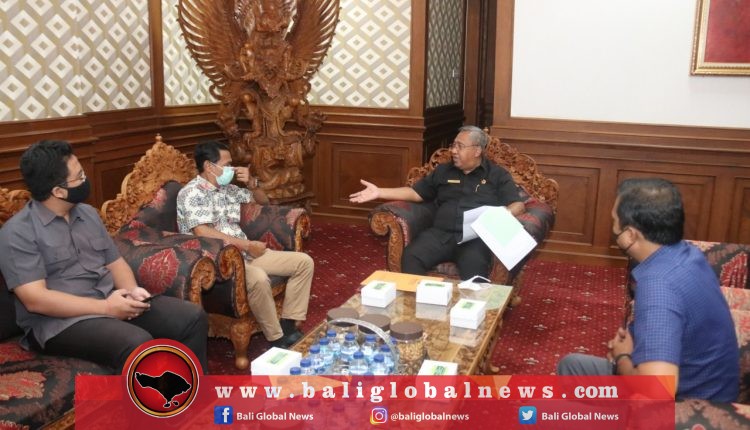 Ketua DPRD Badung, Putu Parwata, menerima audiensi jajaran Ketua Bawaslu Badung, Ketut Astasoma, bersama jajarannya di ruang Ketua DPRD Puspem Badung, pada Selasa (2/2).