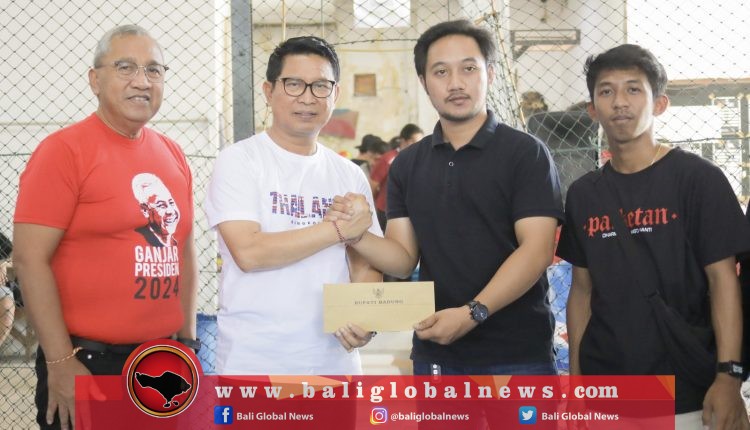 Ketua DPRD Kabupaten Badung, Putu Parwata, mendampingi Sekda Badung, Wayan Adi Arnawa, membuka Turnamen Futsal Paiketan Dalung Permai Cup III di Big Ball Futsal Kerobokan Kaja, Kecamatan Kuta Utara, pada Sabtu (2/9/2023). Sebagai bentuk dukungan dan motivasi Pemerintah Kabupaten Badung, Sekda Adi Arnawa memberikan bantuan dana kegiatan Rp 15 juta.