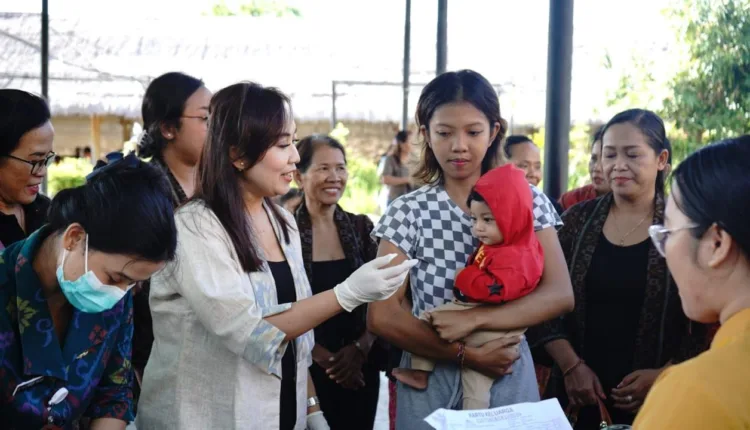 Ny. Arya Wibawa ketika membacakan sambutan yang Ketua TP PKK Kota Denpasar, menyebutkan pentingnya peran keluarga dan masyarakat dalam mendukung tumbuh kembang anak yang sehat dan bahagia.