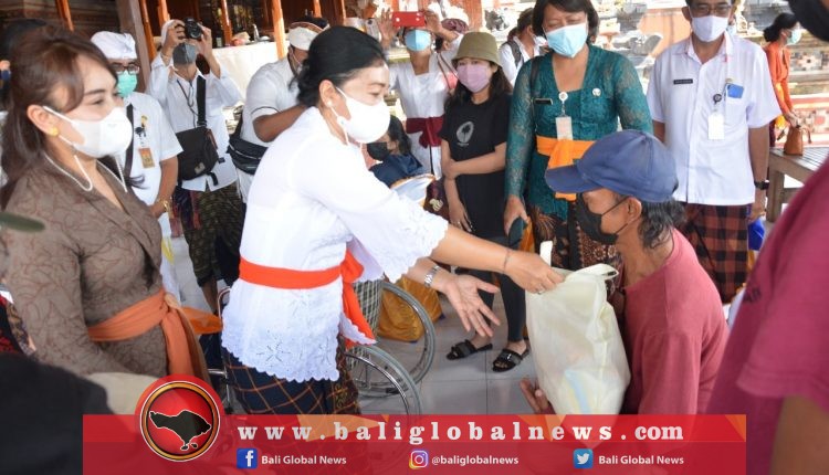 Dalam kesempatan tersebut Ny. Jaya Negara dan Ny. Arya Wibawa menyerahkan bantuan sembako yang diterima disabilitas.