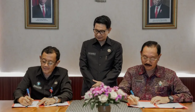 Dinas Kependudukan dan Pencatatan Sipil (Disdukcapil) dan Dinas Perindustrian dan Tenaga Kerja (Disperinaker) Kabupaten Badung menandatangani perjanjian kerja sama (MoU) pemanfaatan data kependudukan di Ruang Rapat Sekda, Puspem Badung pada Selasa (23/7/2024). Penandatanganan disaksikan oleh Sekda Badung I Wayan Adi Arnawa.
