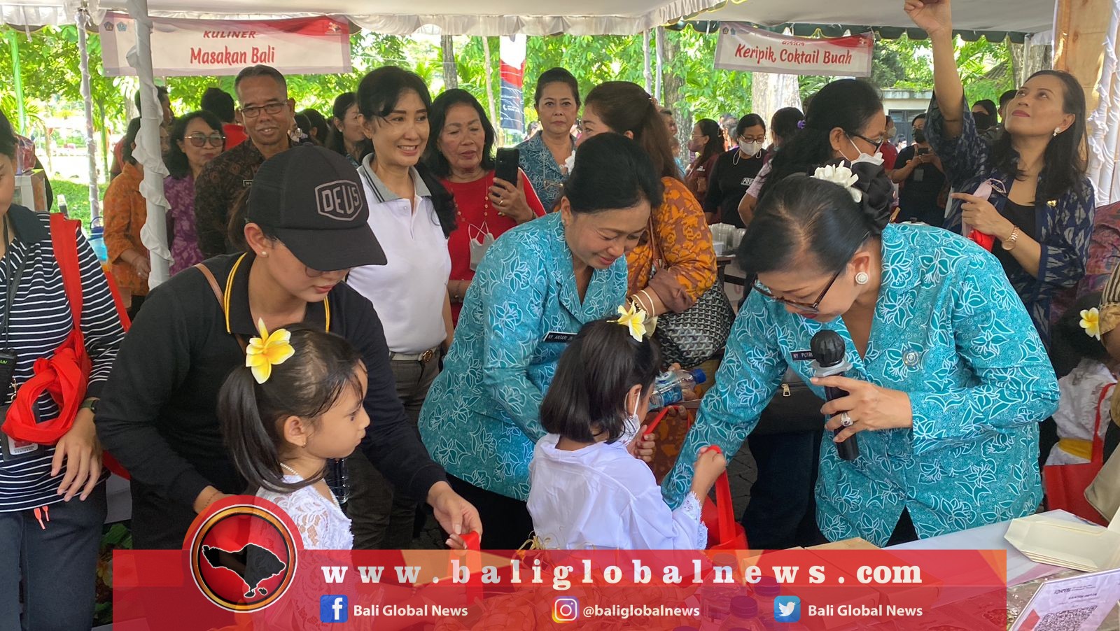 Ketua TP PKK Provinsi Bali, Ny. Koster dan Ketua TP PKK Kota Denpasar Ny. Jaya Negara hadir langsung dalam kegiatan pasar rakyat yang dimulai sejak pagi hari itu.