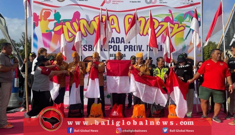 Laksanakan Zumba Party, Badan Kesbangpol Provinsi Bali Rangkaikan dengan Pembagian Bendera dan Paket Sembako