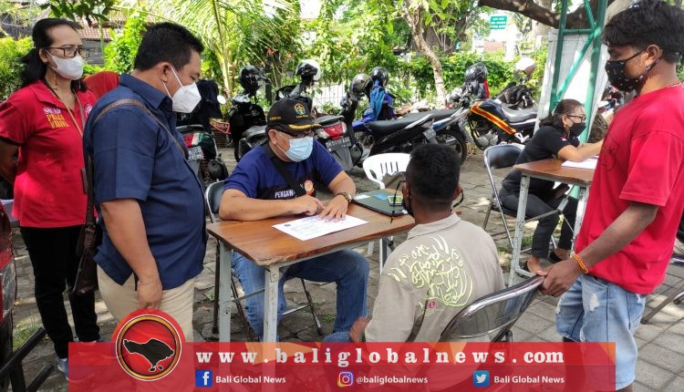 Tim Yustisi Kota Denpasar menertibkan 23 orang pelanggar protokol kesehatan (prokes) saat penertiban di Jalan Simpang Jalan Raya Sesetan – Suwung Batankendal, Kelurahan Sesetan, Kecamatan Denpasar Selatan, Kamis (7/10).