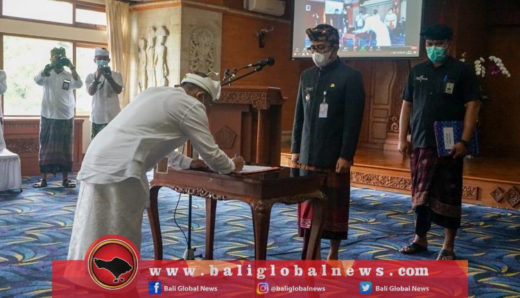 Walikota Denpasar, IGN Jaya Negara, melantik pejabat pimpinan tinggi pratama dan pejabat fungsional di lingkungan Pemerintah Kota Denpasar di Ruang Praja Utama Kantor Walikota Denpasar, pada Senin (29/3). Empat orang pejabat pimpinan tinggi pratama dan 80 pejabat fungsional mengikuti pelantikan yang dikemas dalam sistem daring dan luring dengan menerapkan disiplin protokol kesehatan.