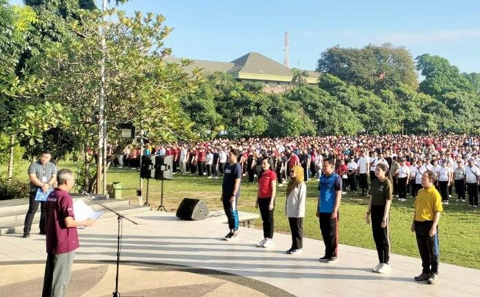 Tampak sejak pagi hari para Calon PPPK di lingkungan Pemkot Denpasar sudah memadati lapangan. Tercatat, 3.926 orang akan mengikuti pelantikan PPPK Tahap I yang sebelumnya merupakan Tenaga Kontrak di Lingkungan Pemkot Denpasar.