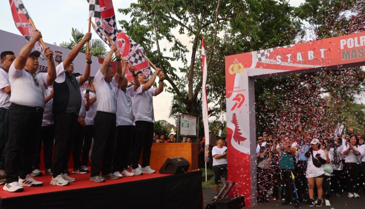 Gubernur Bali Wayan Koster melepas kegiatan jalan sehat “Polri Bersama TNI dan Masyarakat” dalam rangka peringatan Hari Bhayangkara ke-79 yang digelar di Lapangan Puputan Margarana, Renon, Denpasar Sabtu (28/6/205). Kegiatan yang diikuti lebih dari 10 ribu peserta ini berlangsung meriah dan penuh semangat kebersamaan.