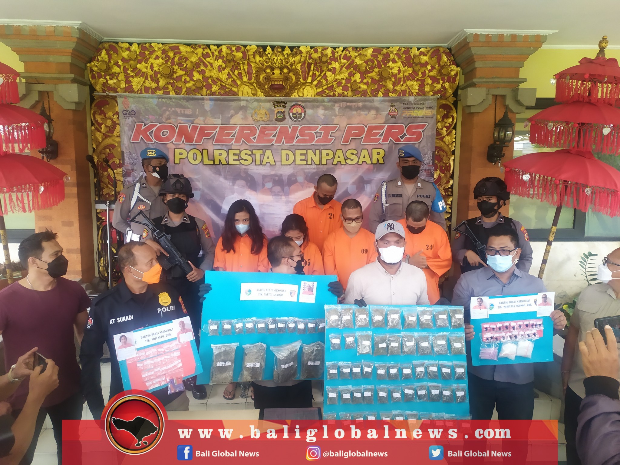 Satuan Resnarkoba Polresta Denpasar menangkap lima orang tersangka kasus peredaran gelap narkoba jenis ganja seberat 4.725 gram (4.7 kg) dan sabu-sabu seberat 192,50 gram. Dan dirilis di halaman kantor kepolisian setempat, pada Kamis (15/9/2022).