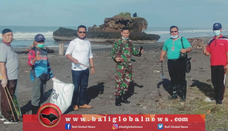Masyarakat Bersama Kodim Tabanan Bersih-Bersih Di Pesisir Pantai Yehgangga