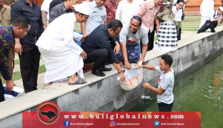 Menambah Keindahan Pura Agung Jagatnatha, Walikota Jaya Negara Lepas 360 ekor Ikan Koi