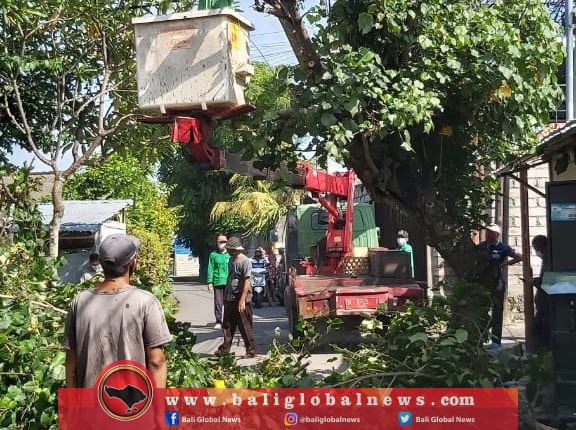 Dinas Lingkungan Hidup dan Kebersihan (DLHK) Kota Denpasar secara cepat dan sigap mengantensi pohon waru yang membentang di Jalan Subak Dalem, Desa Peguyangan Kangin, pada Selasa (2/2).
