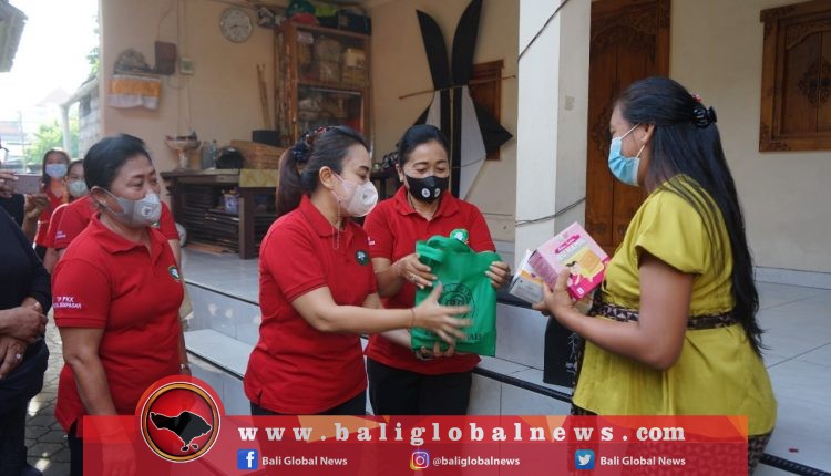 Ketua Tim Penggerak PKK Kota Denpasar, Ny. Jaya Negara bersama Istri Wakil Walikota Ny. Arya Wibawa dan Ketua DWP Kota Denpasar, Ny. Wiradana menyerahkan bantuan pemberian makanan tambahan (PMT) dan alat-alat protokol kesehatan (prokes) secara langsung kepada 16 orang ibu hamil dan balita di empat kecamatan se-Kota Denpasar pada Sabtu (19/2).