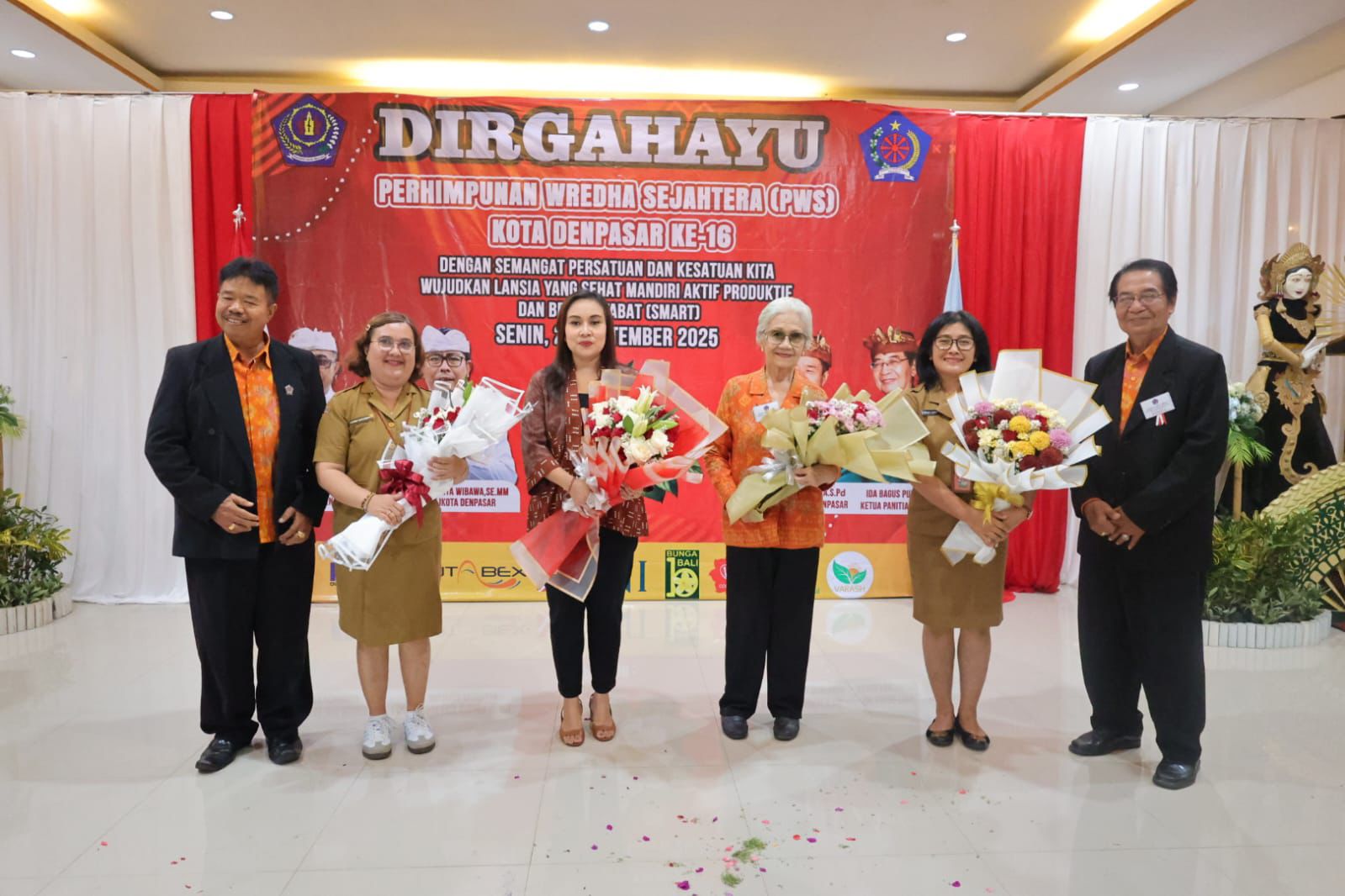 Puncak Perayaan HUT ke-16 Perhimpunan Wredha Sejahtera (PWS) Kota Denpasar Tahun 2025 dilaksanakan di Gedung Wanita Santi Graha, Denpasar, pada Senin (29/9/2025).
