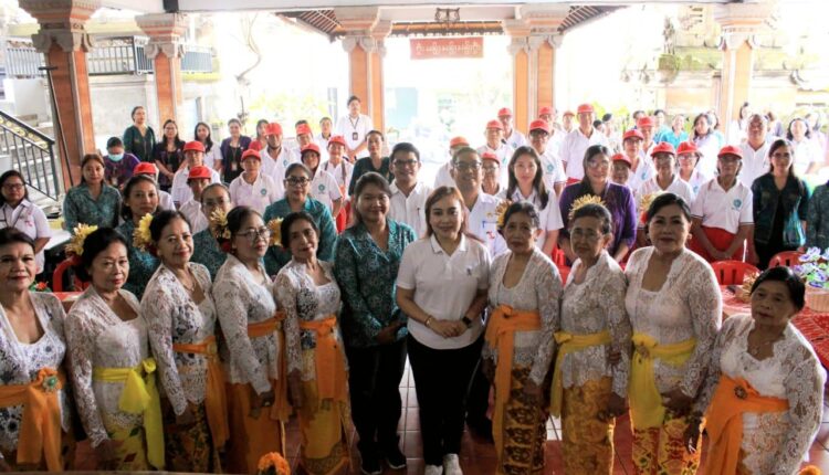 Ny. Arya Wibawa didampingi Ketua TP PKK Kecamatan Denpasar Timur Ida Ayu Wayan Karang Sujani meninjau pemeriksaan kesehatan oleh petugas dari Puskesmas 1 Denpasar Timur, dan turut menyapa puluhan ibu hamil, balita, dan lansia.