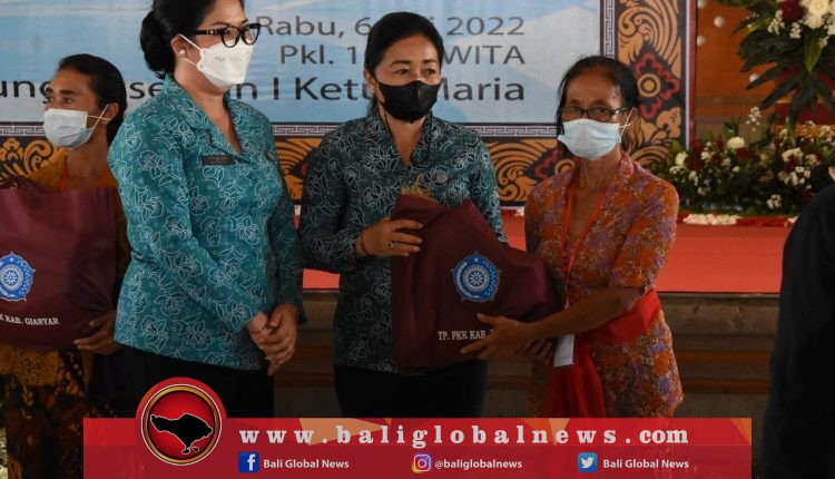 Ny. Jaya Negara didampingi Ketua Gabungan Organisasi Wanita (GOW) Ny. Arya Wibawa dan Ketua DWP Ny. Wiradana, Kepala Dinas Pemberdayaan Masyarakat Desa I Wayan Budha.