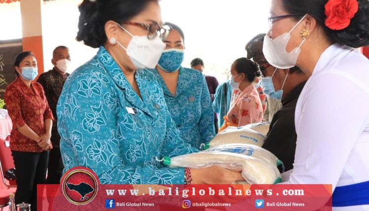 Dia menyalurkan bantuan total 6 ton beras dimana 3 ton beras dari TP PKK Provinsi Bali dan 3 ton beras dari Gubernur Bali, dengan penerima  masing-masing memperoleh 25 kg. Bantuan itu ditujukan kepada lansia, penyandang disabilitas, kader PKK, balita gizi kurang/buruk serta ibu hamil kekurangan energi kronis (KEK). Selain bantuan beras, pendamping orang nomor satu di Bali ini juga menyerahkan 30 kaleng susu.
