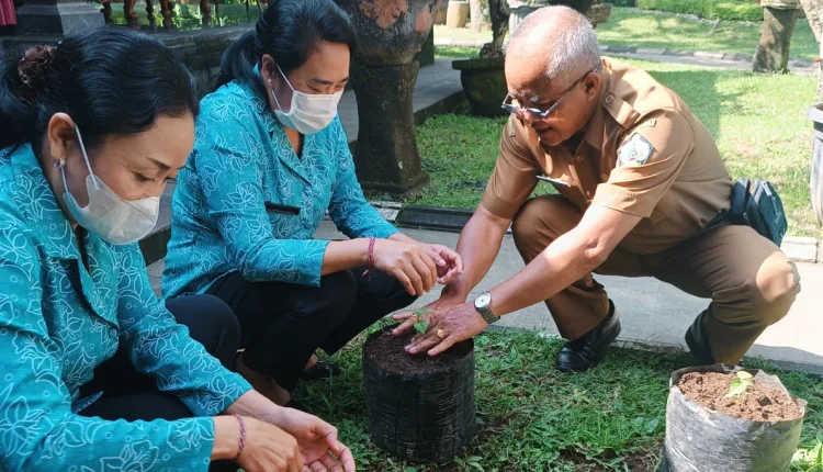Ketua Tim Penggerak Pemberdayaan dan Kesejahteraan Keluarga (TP PKK) Kabupaten Bangli, Ny. Sedana Arta, mengikuti gerakan tanam (Gertam) cabai serentak se-Indonesia sebagai rangkaian dari Hari Kesatuan Gerak PKK (HKG-PKK) ke-52 Tahun 2024 di Rumah Jabatan Bupati Bangli, pada Senin (4/3/2024).