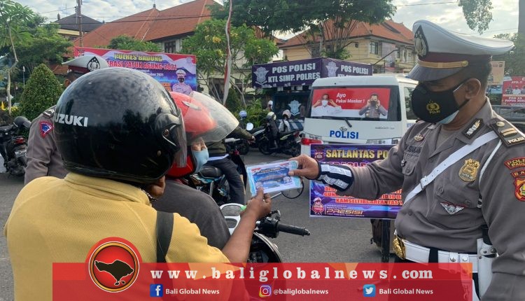 Ops Patuh Agung-2021, Satlantas Polres Badung Bagikan Masker kepada Pengendara