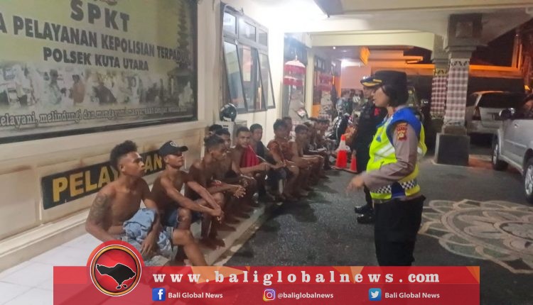 Polsek Kuta Utara menangkap delapan pelaku penganiayaan di Jalan Pantai Brawa, tepatnya Lapangan Umum Brawa, Banjar Tegal Gundul, Desa Tibubeneng, Kecamatan Kuta Utara, pada Sabtu (12/11/2022). Mereka ditangkap karena membawa senjata tajam tanpa ijin sesuai dengan UU darurat RI No. 12 tahun 1951.