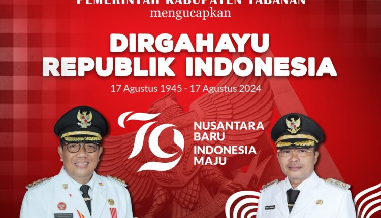 Bupati Tabanan I Komang Gede Sanjaya bersama Wakil Bupati Tabanan I Made Edi Wirawan mengucapkan Dirgahayu Republik Indonesia ke-79 tahun 2024.