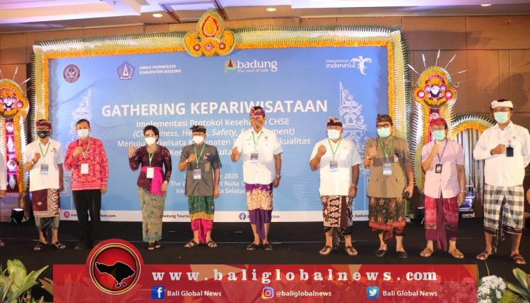 Guna menuju pariwisata Kabupaten Badung berkualitas dan tetap produktif di tengah pandemi Covid-19, Pemkab Badung melalui Dinas Pariwisata melaksanakan gathering kepariwisataan implementasi protokol kesehatan CHSE (cleanliness, health, safety, environment) di Kecamatan Kuta Selatan, Selasa (1/12).