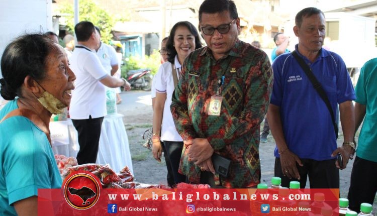 Sekretaris Daerah (Sekda) Kota Denpasar, Ida Bagus Alit Wiradana, meninjau pelaksanaan bazzar pangan di Jaba Pura Ulun Suan, Desa Pemecutan Klod, pada Jumat (25/8/2023) pagi. Kegiatan tersebut dilaksanakan guna menekan dan menjaga stabilitas laju inflasi di Kota Denpasar.