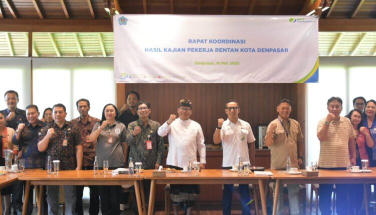 Pemerintah Kota Denpasar berkomitmen untuk mendukung optimalisasi jaminan sosial ketenagakerjaan bagi pekerja rentan di Kota Denpasar. Hal ini dilaksanakan guna mendukung terwujudnya tenaga kerja yang aman, sejahtera dan kompetitif di ibukota Provinsi Bali ini. Demikian disampaikan Sekda Kota Denpasar Ida Bagus Alit Wiradana saat menghadiri rapat kordinasi dan penyerahaan naskah akademik hasil kajian pekerja rentan Kota Denpasar di sebuah rumah makan di Denpasar pada Jumat (16/5/2025).
