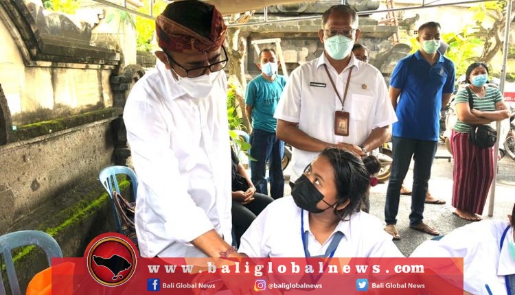 Walikota Denpasar, IGN Jaya Negara, meninjau vaksinasi massal berbasis banjar di Desa Sidakarya, Kelurahan Panjer, dan Kelurahan Sesetan, pada Senin (5/4).