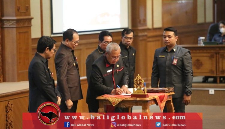Dewan Perwakilan Rakyat Daerah) Kabupaten Badung menggelar penutupan rapat paripurna tahun 2022 di Ruangan Sidang Utama Gosana, Sekretariat DPRD Puspem Badung pada Senin (14/11/2022). Rapat mengagendakan pengambilan keputusan terhadap Rancangan Peraturan Daerah (Raperda) tentang APBD Kabupaten Badung tahun 2023, Raperda tentang Penyelenggaraan Bantuan Hukum, Raperda tentang Penyelenggaraan Perlindungan dan Pengelolaan Lingkungan Hidup dan Raperda tentang Perusahaan Umum Daerah Pasar dan Pangan Mangu Giri Sedana.
