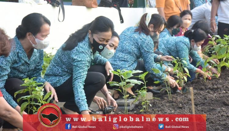 Tim Penggerak PKK Kota Denpasar mengagendakan berbagai kegiatan dalam Peringatan Hari Kesatuan Gerak PKK Ke-50 tingkat nasional. Pada Kamis (10/3), Ketua TP PKK Denpasar, Ny. Jaya Negara memimpin gerakan menanam tanaman pangan di TPS 3R Paku Sari, Kelurahan Panjer, Denpasar Selatan.