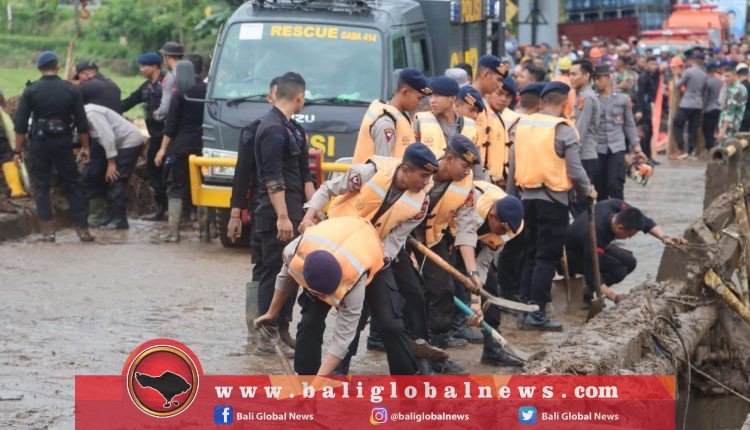 Personel Polda Bali Bantu Evakuasi Korban Banjir Mendoyo