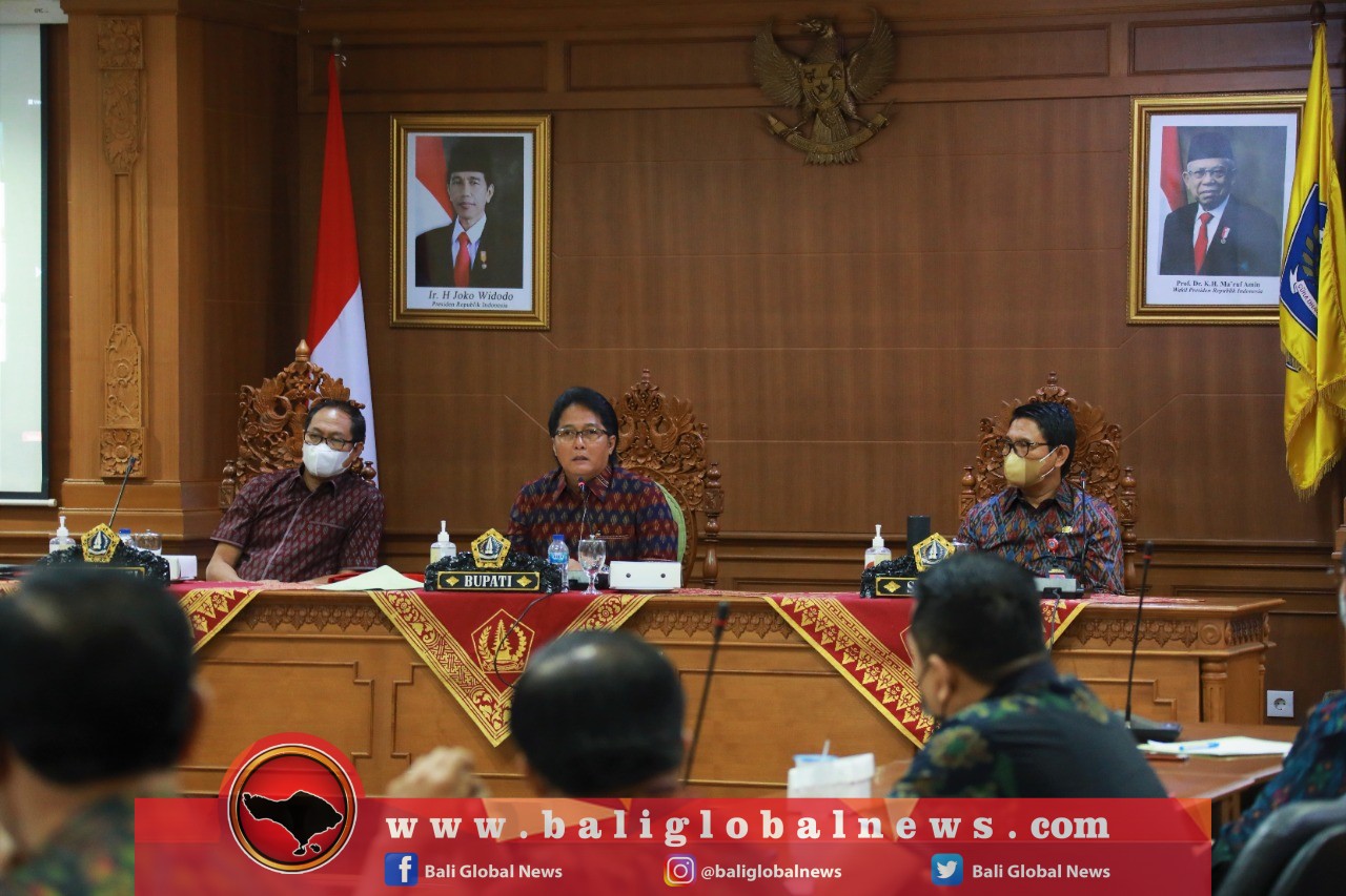 Rapat diikuti Kepala OPD dan camat serta secara daring oleh lurah dan perbekel dengan tujuan untuk menyamakan persepsi, menyatukan langkah-langkah serta terus melakukan upaya-upaya terobosan dalam menghadapi berbagai tantangan serta permasalahan yang terjadi pada situasi saat ini.Bupati Giri Prasta menyampaikan di tengah situasi pandemi Covid-19 yang berimbas sangat besar terhadap kondisi perekonomian daerah, sehingga perlu dilakukan langkah evaluasi dan koreksi atas pelaksanaan APBD tahun 2021. Untuk itu dari sisi belanja, Bupati menginstruksikan kepada Sekda melalui Tim Anggaran Pemerintah Daerah (TAPD) melakukan koordinasi melibatkan seluruh perangkat daerah.