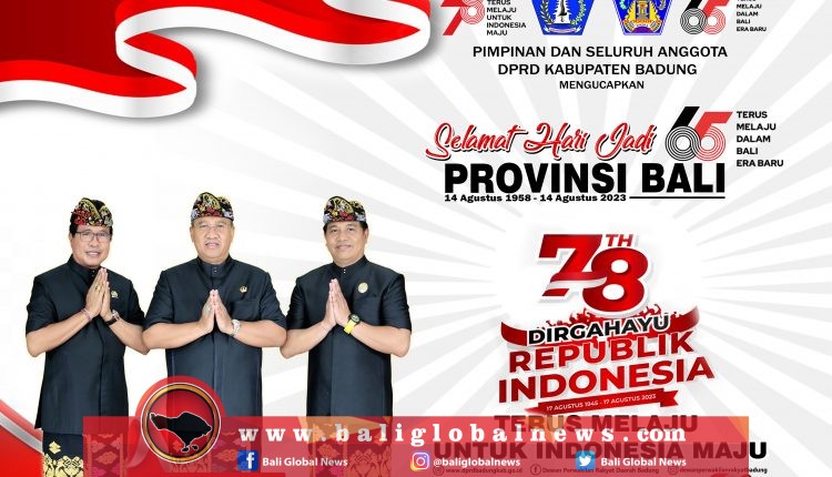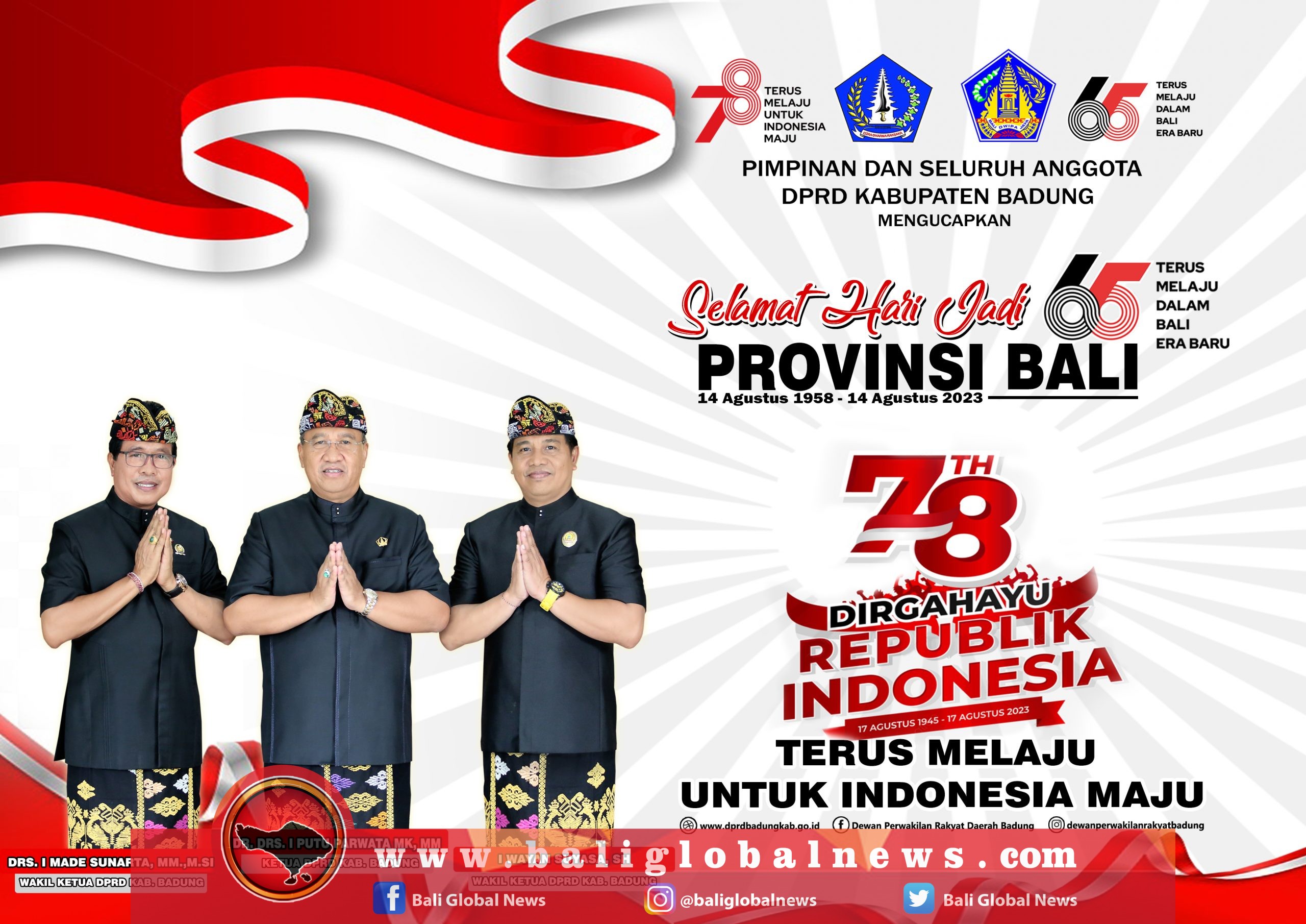 Pimpinan dan Segenap Anggota DPRD Badung mengucapkan “Selamat Hari Jadi ke-65 Pemerintah Provinsi Bali dan Dirgahayu HUT ke-78 Republik Indonesia
