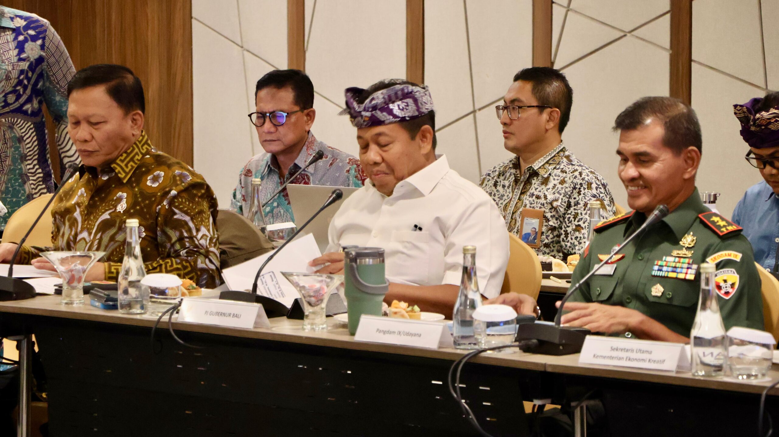 Pj. Gubernur Mahendra Jaya mengapresiasi atas perhatian besar Pemerintah Pusat dalam menyelesaikan berbagai persoalan di Bali. Dia menjelaskan bahwa hingga saat ini, pertumbuhan ekonomi Bali masih sangat bergantung pada sektor pariwisata. Terkait perkembangan pariwisata, dia menuturkan bahwa Bali merupakan salah satu destinasi wisata favorit bagi turis mancanegara. Hal ini dapat dilihat dari layanan penerbangan di Bandara Ngurah Rai yang didominasi oleh penerbangan internasional. “60 persen internasional, 40 persen domestik,” ujarnya.