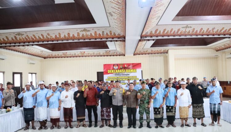 Pjs. Walikota Denpasar I Dewa Gede Mahendra Putra menghadiri dan mendukung pelaksanaan Deklarasi Damai dalam mendukung pengamanan pemilihan Walikota dan Wakil Walikota Denpasar serta Bupati dan Wakil Bupati Badung Tahun 2024 yang dilaksanakan Polresta Denpasar di Gedung Serba Guna Polresta Denpasar pada Jumat (27/9/2024).