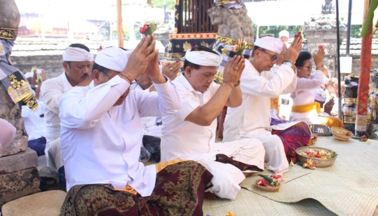 Pjs. Walikota Dewa Mahendra Ngaturang Bakti Pujawali di Pura Dalem Sakenan