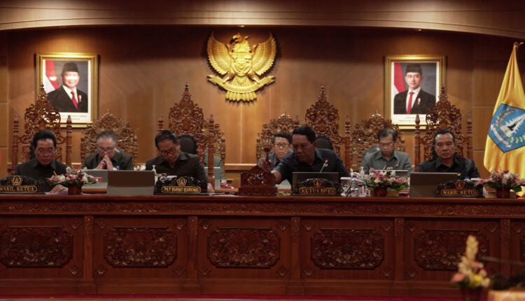 Pelaksana Tugas (Plt) Bupati Badung I Ketut Suiasa menghadiri Sidang Paripurna Kelima Masa Persidangan Pertama DPRD Badung Tahun 2024 dengan agenda Penjelasan DPRD terhadap tiga Rancangan Peraturan Daerah (Raperda) inisiatif DPRD tentang Penyelenggaraan Pendidikan Wawasan Kebangsaan, Desa Wisata, dan Perlindungan dan Pemberdayaan Usaha Mikro yang dirangkaikan dengan Pemandangan Umum Fraksi-Fraksi terhadap Rancangan Peraturan Daerah (Ranperda) tentang Anggaran Pendapatan dan Belanja Daerah (APBD) Tahun Anggaran 2025 di Ruang Sidang Utama Gosana Sekretariat DPRD Badung pada Rabu (30/10/2024).