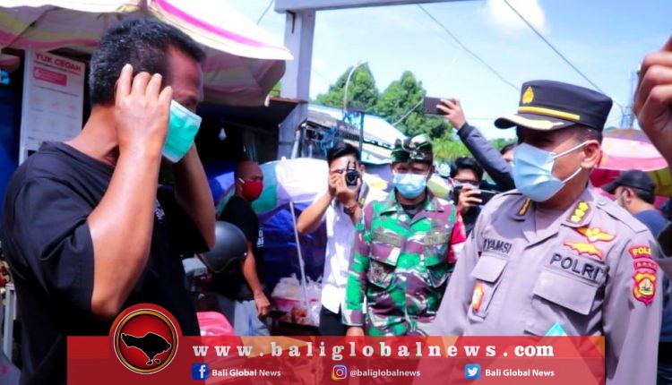 Polda Bali Edukasi dan Bagikan Masker di Pasar Dauh Pala Tabanan