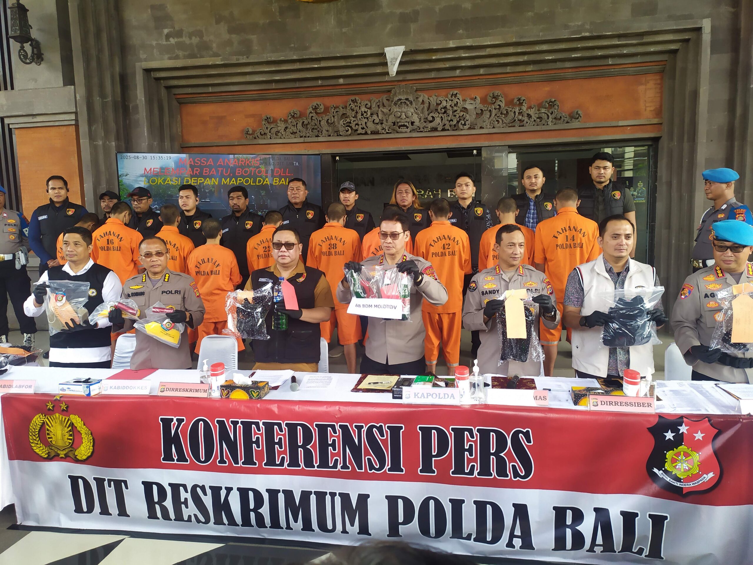Kepolisian Daerah Bali menetapkan 14 orang tersangka dugaan aksi unjuk rasa anarkis, penganiayaan, pencurian dan membahayakan keamanan usai demonstrasi di depan Mapolda Bali dan depan DPRD Bali pada Sabtu (30/8/2025) lalu.