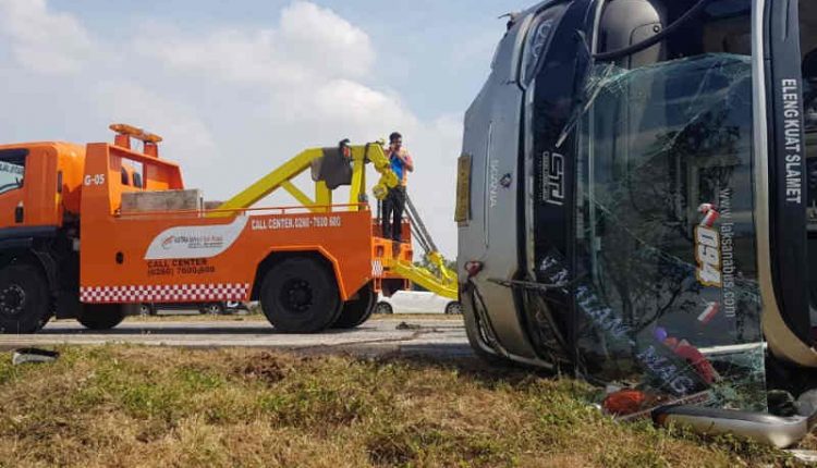 Luky mengatakan pihaknya masih menangani kecelakaan tunggal tersebut, karena kendaraan bus yang mengalami kecelakaan menghambat jalur lalu lintas.