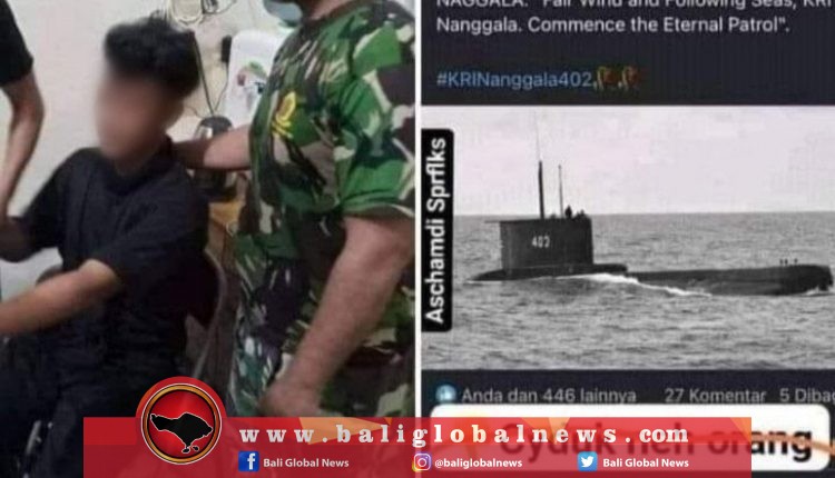 Pihak kepolisian menangkap seorang pria di Medan, Sumatera Utara, karena menghina keluarga besar awak kapal selam KRI Nanggala-402 yang telah dinyatakan tenggelam di perairan utara Pulau Bali. Laki-laki itu berkomentar dalam posting di akun media sosial Facebook Aliansi Kuli Seluruh Indonesia dengan kalimat hinaan tentang istri awak KRI Nanggala-402. Posting-an tersebut kemudian viral di media sosial. Kabid Humas Polda Sumatera Utara, Komisaris Besar Polisi Hadi Wahyudi, di Medan, Senin mengatakan, “Sedang diproses di Polres Belawan.”
