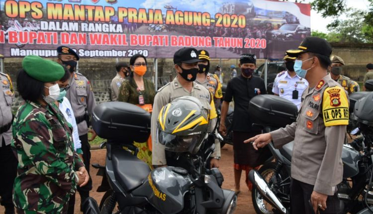 Kepolisian Resor Badung menggelar Apel kesiapan Ops Mantap Praja Agung 2020 di Lapangan Umum Mengwi, Badung, Bali, Kamis, (3/9) pagi 09.00 wita.