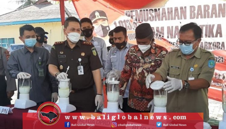 Pemusnahan barang bukti sabu-sabu dengan cara dihancurkan dengan mesin blender dihadiri Kajari Bangka Farid Gunawan, Pengadilian Negeri Sungilait, Ketua DPRD Kabupaten Bangka Iskandar, serta Staf Ahli Bupati Bangka Bidang Politik dan Pemerintahan Asmawi Alie.(bgn123)21052511