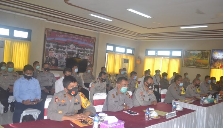 Polres Bangli mengikuti Monitoring Pengendalian Mutu Wasrik Tahap II Itwasum Polri tahun 2020 yang dipusatkan di Polres Gianyar, Selasa (3/11). Monitoring pengendalian mutu wasrik tahap II ini diikuti lima Polres di antaranya Polres Bangli, Polres Klungkung, Polres Karangasem, Polres Buleleng dan Polres Gianyar sebagai tuan rumah.