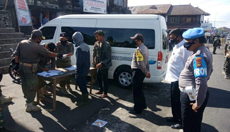Anggota Polsek Kintamani Polres bersama Satpol PP Bangli, Dishub Bangli, Koramil Kintamani, Linmas Kintamani, Pecalang Desa Adat Kintamani dan pengelola pasar melaksanakan razia kepada masyarakat yang tidak menggunakan masker di depan Pasar Singamandawa Kintamani. Senin (7/9).