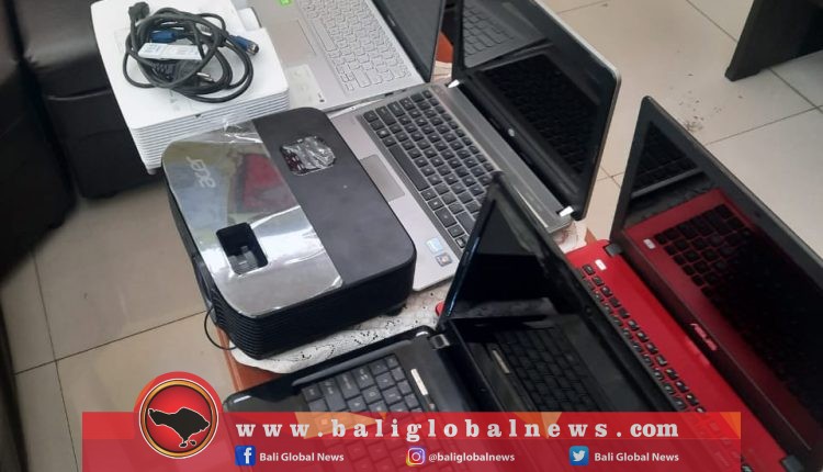 Dari tangan terduga pelaku telah diamankan barang bukti berupa 1 ( satu ) buah Amplipayer, 4 ( empat) buah LCD proyektor berbagai merk, 4 ( empat) buah Laptop berbagai merk. Cara pelaku mengambil barang tersebut pada saat kedaan kosong dengan cara merusak pintu terlebih dahulu agar bisa masuk.